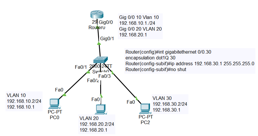Berikut contoh penjelasan VLAN Routing Sederhana.